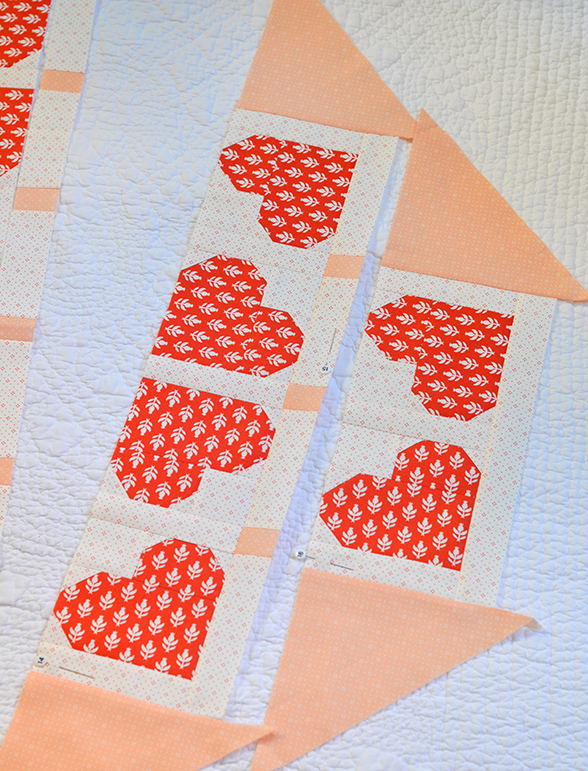 Be sure to watch the direction of each of your hearts as you add them into your rows and watch your quilt grow right in front of your eyes!