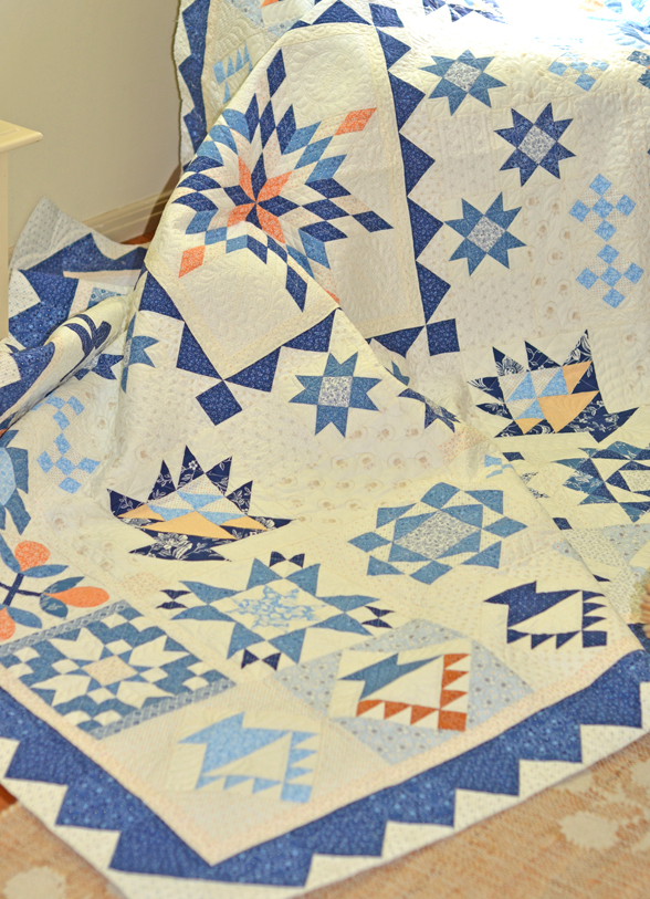 This quilt is reminiscent of a traditional medallion layout so there is some uniformity to the blocks. The blocks are traditional, classic blocks inspired by vintage quilts – as always!